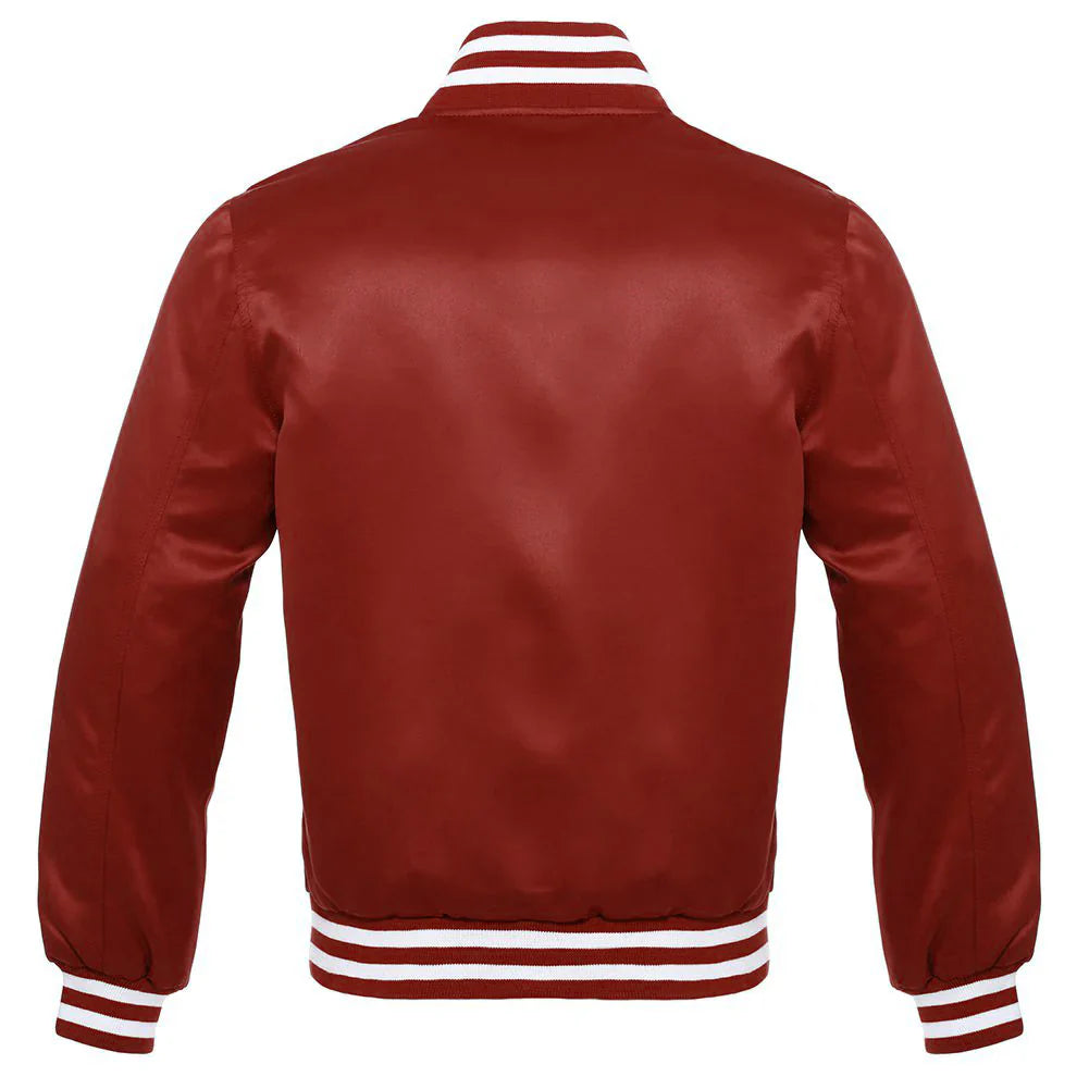 Satin Jacket Vintage Style Letterman Baseball Maroon Bomber Jacket with White Trim